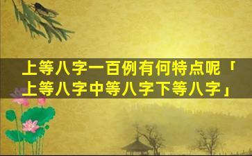 上 🕸 等 🌻 八字一百例的特 🌴 点: