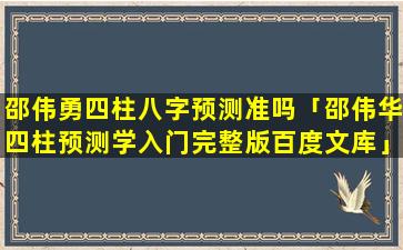 邵伟 🐟 华四柱 🐘 预测 🪴 学入门评价