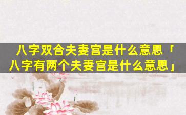 八字 🐴 双合夫妻宫意 🌹 味 🐒 着: