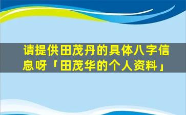 抱歉,我,无法提供田茂丹的具体八字信息因为我 🐝 没有访问此类个人 🐴 信息的 🕸 权限。