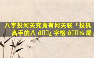 “八字投河关”是一句俗语,意 🦄 ,为生辰八 🐼 字不好容易孤苦伶仃、遭遇不测。