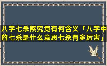 七杀是一个既吉且凶的十神,要 🦈 具 🌷 体分析八字格局 🦊 才能判断其吉凶祸福。