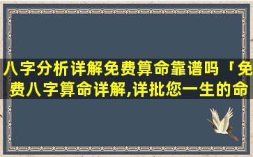 八字分 🦈 析免费算命是否靠 🦅 谱?