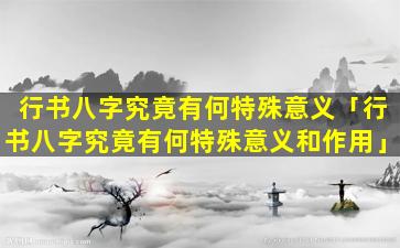 行书八字在传 🐺 统文化中被 🐈 赋予了多种特殊意义,既,有,实用性又有象征意义和艺术价值反映了中国书法艺术的独特魅力和深厚内涵。