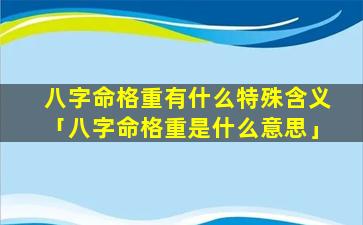 在八字命理学中八字命,“格重”通 🐈 “常是指一个人 🐘 的八字格局中包含了过多的强”、“旺”之,气而缺少平衡和制约。