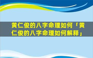 总体来看,黄,仁,俊的八字格局属于 🐴 印比旺盛之格事业发展较慢容易遇到阻 🐞 碍。但,其,学,习,能。力强有 🐒 情有义若能克服缺点充分发挥优势则可取得一定的成就