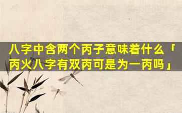 八字天干有两个丙的吉凶 🌷 取决于整个八字 🦈 格局的组合和 🦋 平衡。