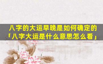八字命理 🐦 中,大运是每十年或 💮 五年为一 🌴 个阶段的运势大运。早晚的确定方法有两种: