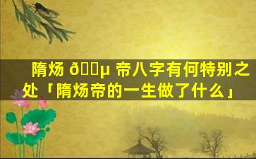 隋炀帝杨广的八字格局显示其具有雄才大略 🐯 、权势显赫之象,但、也、存在贪欲过盛 🌷 品行不端官非口舌之隐患。最 🌴 ,终,他。因暴政而亡成为一代昏君