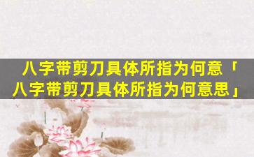 八字带剪刀通常被认为是不 🐘 吉利的,预,示着命主一生容易 🐋 与人发生冲突事业不顺、婚姻不稳等。具。体影响根据剪刀的组合和强弱而有所不 🐅 同
