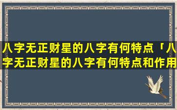 八 🐈 字无正财 🐈 星的八字特 🐎 点