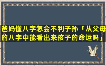 这句话并不正确,父母懂得 🐺 八字不一定不利 🦍 子孙。