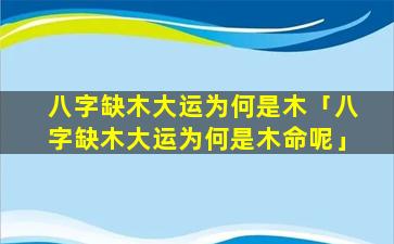 八字缺木,大 🐒 运 🍀 为木 🐱 的原因: