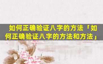 如何正确验证八字的步骤 🐶 和 🍀 方法