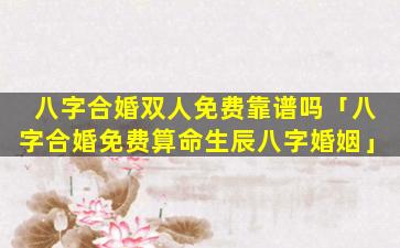 “八字合婚双人 🦉 免费靠谱 🐛 吗”的答案是: