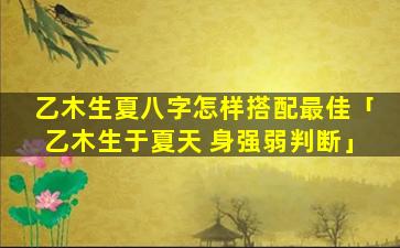 判断乙木生于夏天的身 🦉 强弱 🐺 ,需考虑以 🦄 下因素: