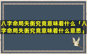八字命局 🕊 失衡的含义