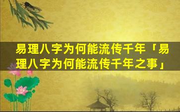 易理八字能流传 🦁 千年主要有以下原 🌷 因:
