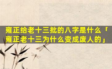 雍正给老 🌷 十三胤祥批的八字是:“福寿双全,骨,肉,情多衣禄不尽子孙贤孝”。
