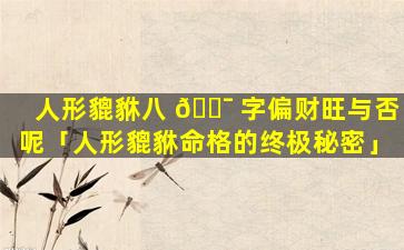 性格特征通常认 🐵 为具有八 🐋 字人形的人具有 🦁 以下性格特征: