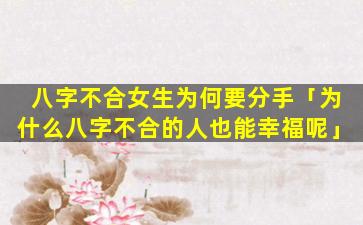 八字不合是一个 🕸 基于传统中国命理学的说法,认,为两个人出生日期和时间中的某些因素不协调会影响他 🐵 们婚姻的幸福。这,种说法,并没有科学依据幸福的婚姻是由多种因素决定的例如: