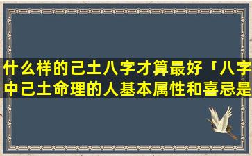对于己土八字而言 🕷 ,最佳的组 🐎 合应满足以下条件:
