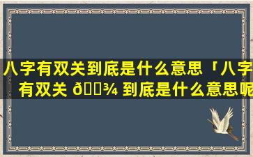 “八字”在古代指的是人的生辰八字,而“双”关则意为一字两义或一语两意。因此八字,“有”双,关的意。思是说一个人的生辰八字中同时 🌷 包含着多 🐼 种不同的含义或技能