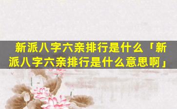 新派八字六亲排行是指在现代八字分析方法中,对六亲(父母、兄、弟、姐妹 🐛 子女配偶)的定位和解读方式与传统八字有所不同。