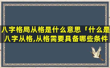八字格局中的“从格”是指在八字命理分析中命,主,身弱且无依托只能依附于某一特 🐳 定五行才 🦢 能形 🐦 成平衡的命格格局。