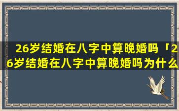 在八字命理中,26岁,结婚是否算 🐕 晚婚取决于个人的出生日期。