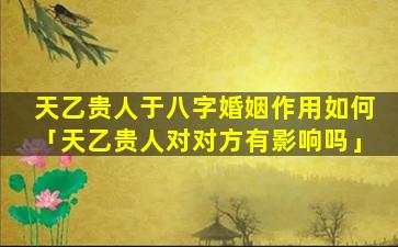 天 🕊 乙贵人在八字婚姻中 🐅 的作用
