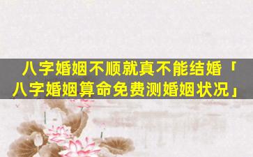 八字婚姻不顺只是一种说法,并不意味着不能结婚婚姻。的幸福 🦋 与否主要 🐕 取决于个人的性格、相、处。方,式,外。在环境等因素通过后天的努力和科学的态度可以改善婚姻运势获得幸福美满的婚姻