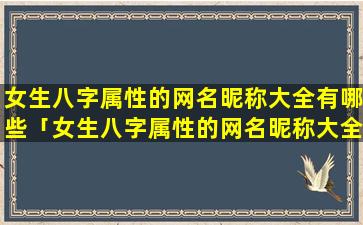 1、女生八字属性的网 🐞 名昵 🌸 称大全有哪些