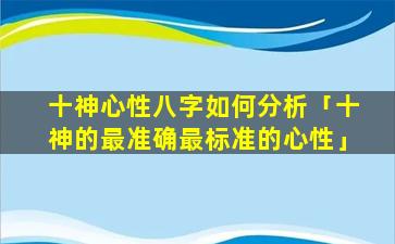 十神心 🌹 性八 💐 字 🌷 分析方法