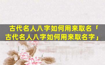 古 🌺 代 🐘 名人八字取名方法 🦆