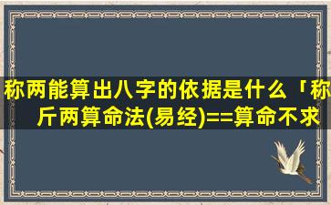 称斤两 🐠 算命法 🐕 是一种古老的算命方法 🌿 ,起源于易经。相,传,此法由汉代著名道家严君平所创又称严君“子命”。