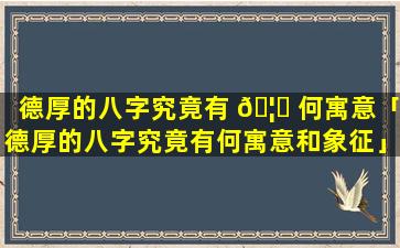 “德厚”八字是一个吉祥的兆头,预,示,着八字主人生 🌳 性善良福报 🕊 深厚一生平安顺遂。