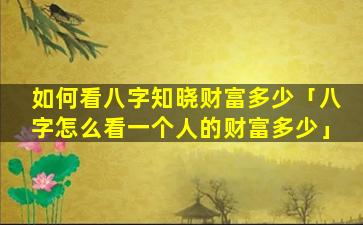 八字 🌵 看财运多 🦟 少的 🌾 方法