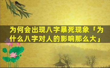 需要注意的是,八,字,暴,死现象并不 🌲 是绝对的它只是预示着命主的运势存在凶险具体是否会发生还 🌻 取决于命主自身的化解和应对措施。