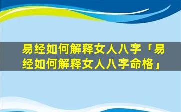 易经解读女性八 🐶 字命格