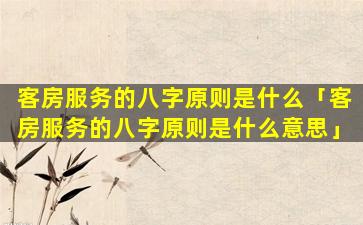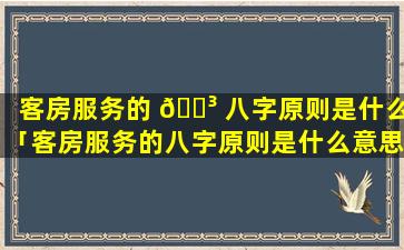 客 🍀 房服务的八字原则