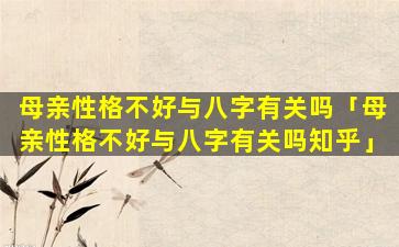 在知乎上,对于“母亲 🐱 性格 🦊 不好 🌻 与八字有关吗”这,一问题有不同的观点: