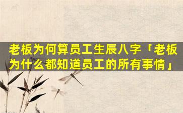 有些老板会算员 🐴 工的生辰八字出 🐈 于 🐛 以下原因: