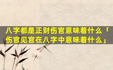 正 🕊 财主稳定的财富,伤,官,坐正财表 🐱 示命主财运不错有赚钱的能力。但 🐒 ,伤官克制正财也容易有破耗、浪,费的。情况需要谨慎理财