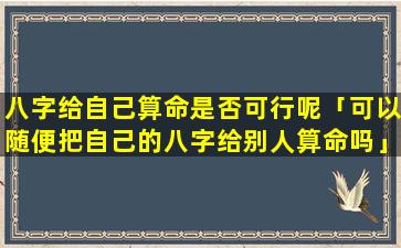 “八字给自己算命 🕸 是 🐕 否可行?”