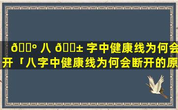 需要注意的是,八,字,健康线断开并不是绝对的健康预言还需要结合其他因素综合考虑例如:大运、流、年流月等 🌼 信息。