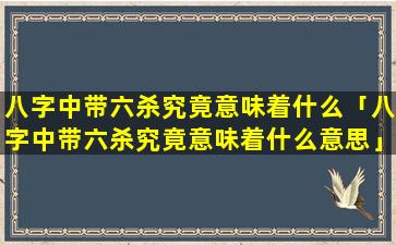 六杀的含义六杀主竞争争、斗、压力 🐈 。命带六杀之人,往,往,性。格,刚。烈做事冲动容易得罪人他们一 🐎 生中会遇到不少竞争和阻碍需要付出比常人更多的努力才能取得成功
