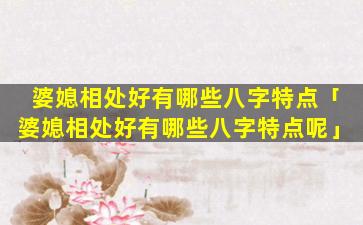 婆媳相 🐘 处和睦的八字特点 🐛