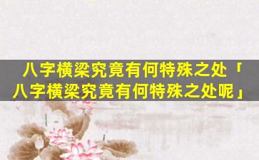 八字横梁的特 🐳 殊之 🍀 处 🍁 :