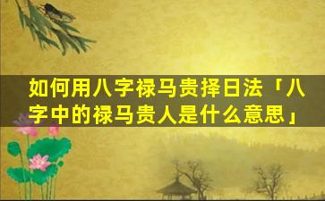 择日 🐦 择 🌳 出禄马 🦁 贵人方法